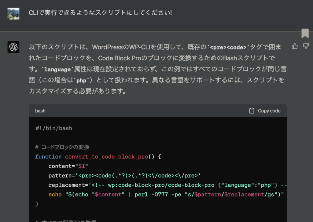 5. `./convert_code_blocks.sh`を実行して、スクリプトを実行します。