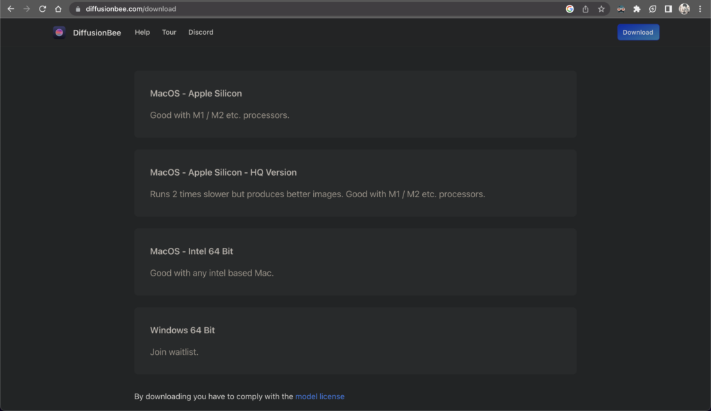 まずDiffusion Beeをダウンロードします。